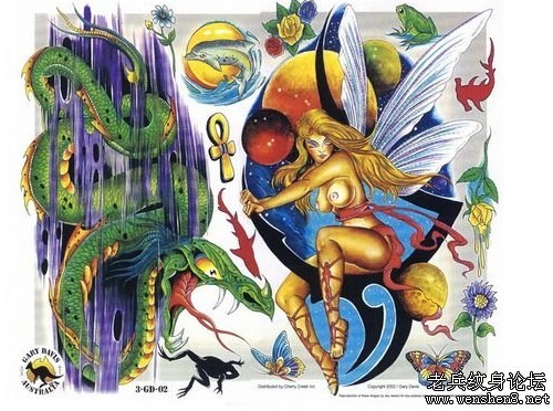 欧美彩色精灵翅膀纹身图案图片