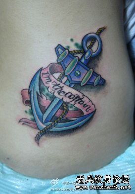 腰部彩色铁锚纹身图案纹身图片