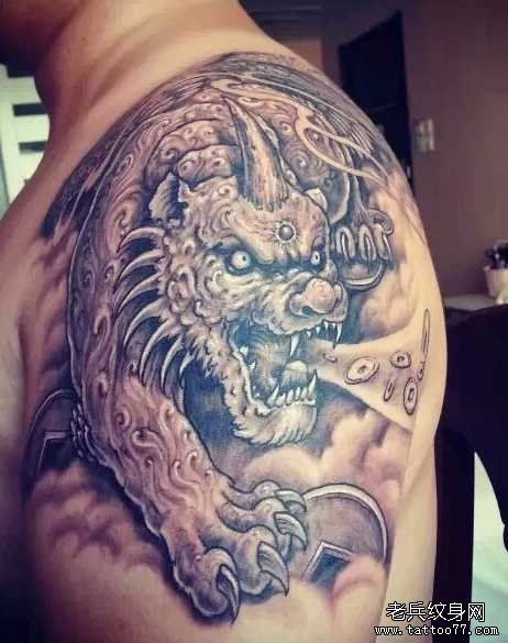 唐狮手臂纹身图案