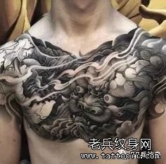 唐狮胸部纹身图案