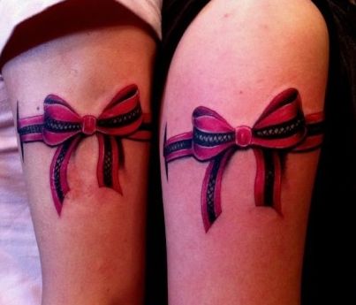 手臂精美的情侣蝴蝶结蕾丝纹身图案