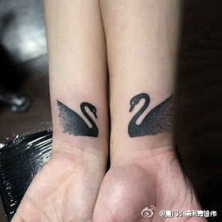 手腕潮流小巧的情侣天鹅纹身图案