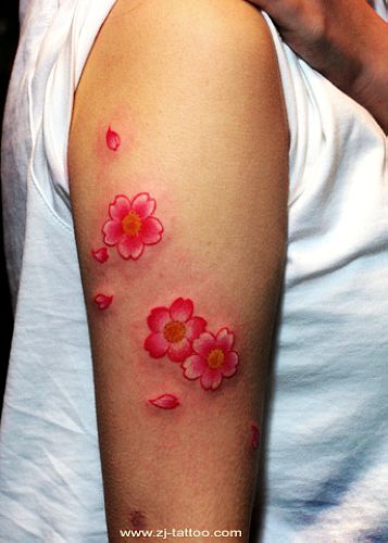武汉专业老兵纹身店:美女后背樱花文身图案图片