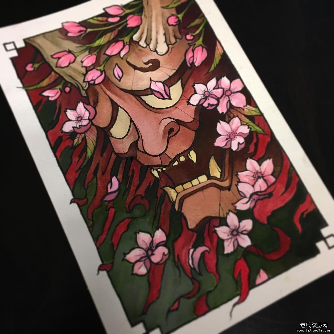 日式传统般若樱花纹身图案