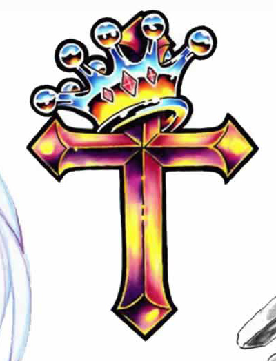 一款彩色十字架皇冠纹身图案纹身图片