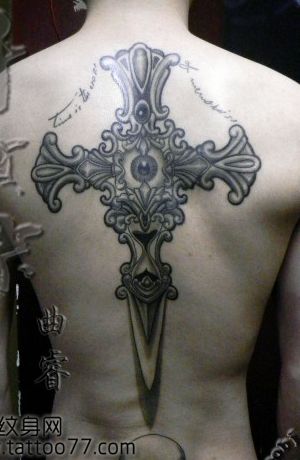 背部经典好看的一款欧美十字架纹身图案
