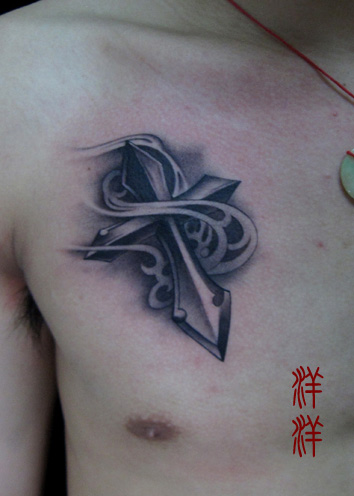 胸部一款经典漂亮的十字架纹身图案