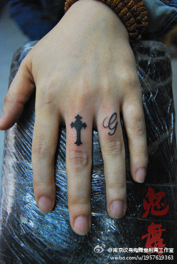 女生手指图腾十字架纹身图案