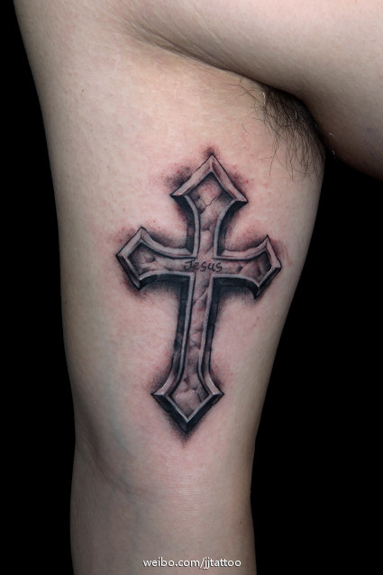 手臂时尚经典的石雕十字架纹身图案