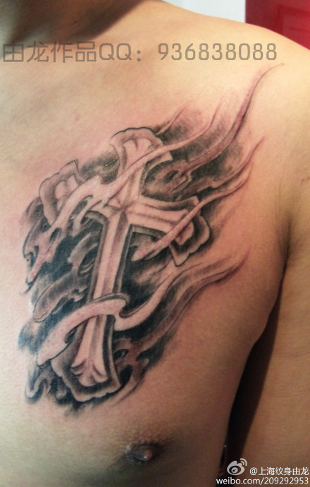 胸部十字纹身图案