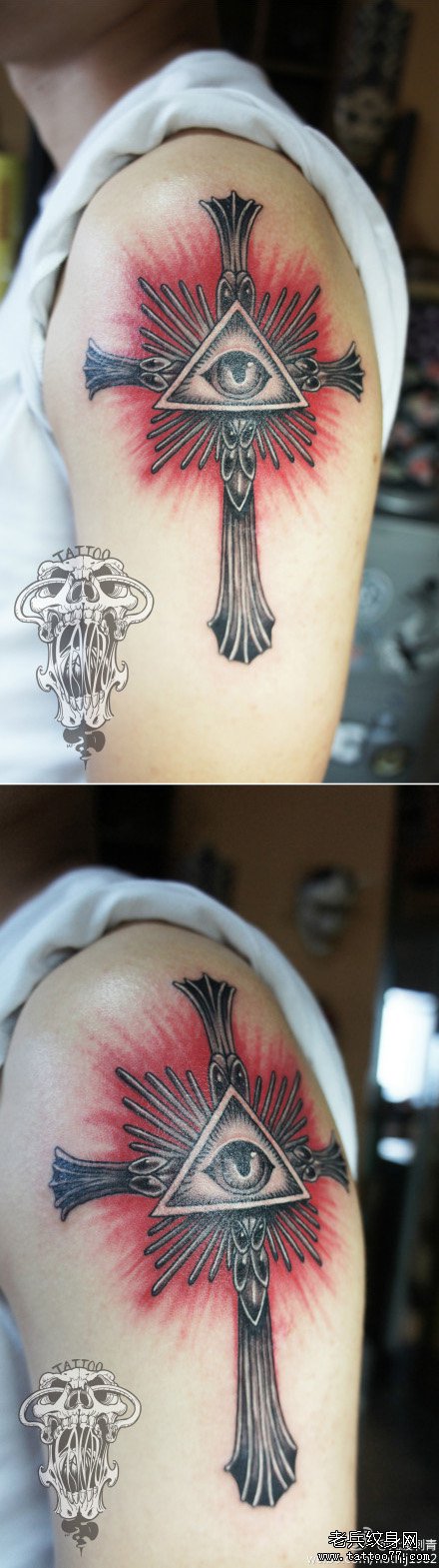 手臂一款潮流很酷的十字架上帝之眼纹身图案