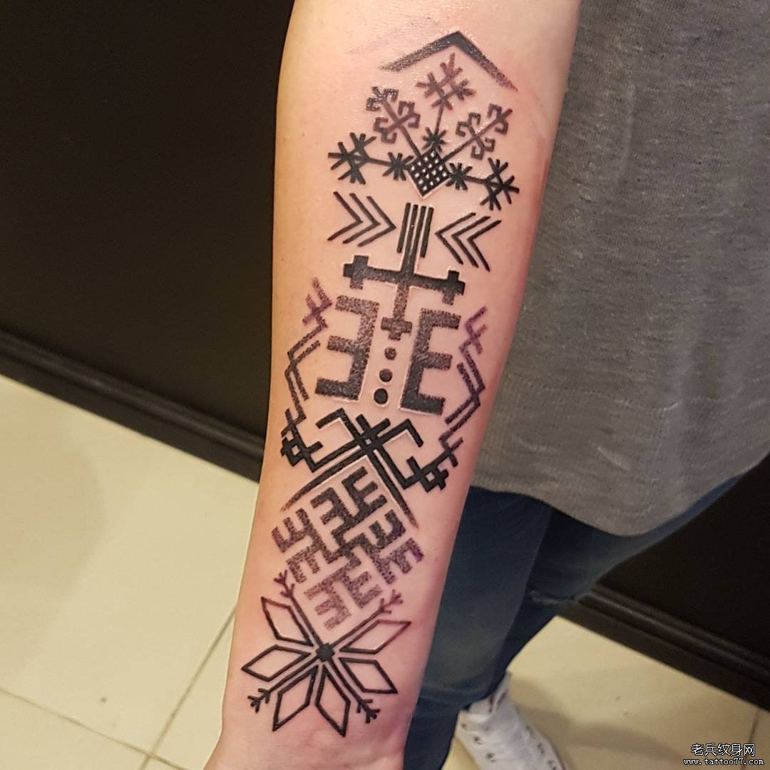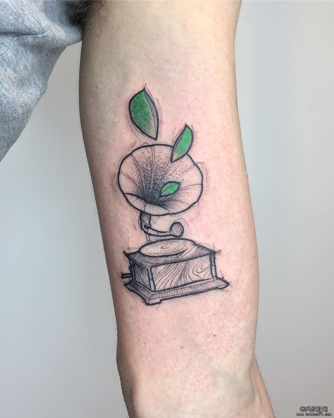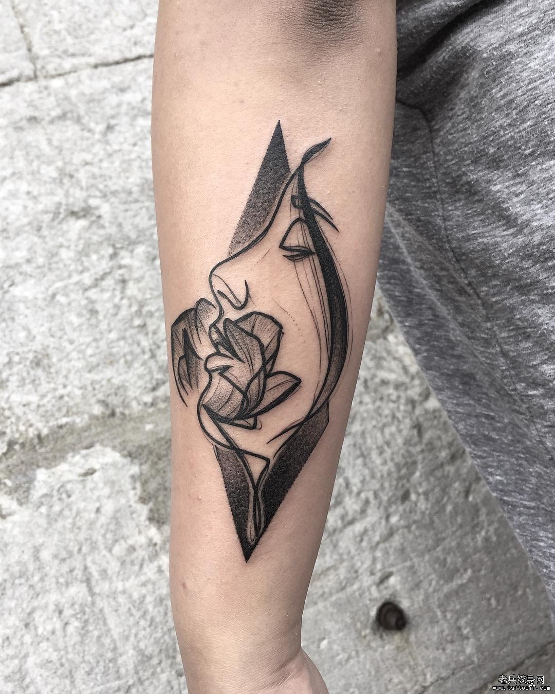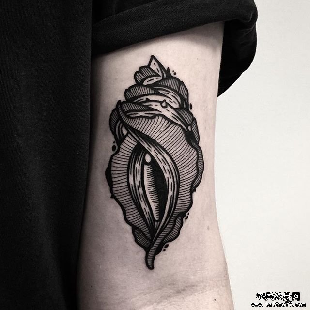 手臂黑灰上帝之眼玫瑰花纹身图案