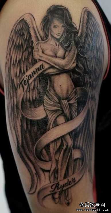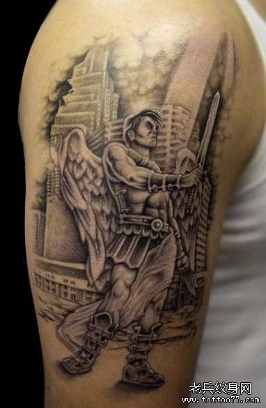 胳膊战士天使纹身图案