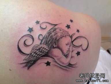 后背小孩天使纹身图案