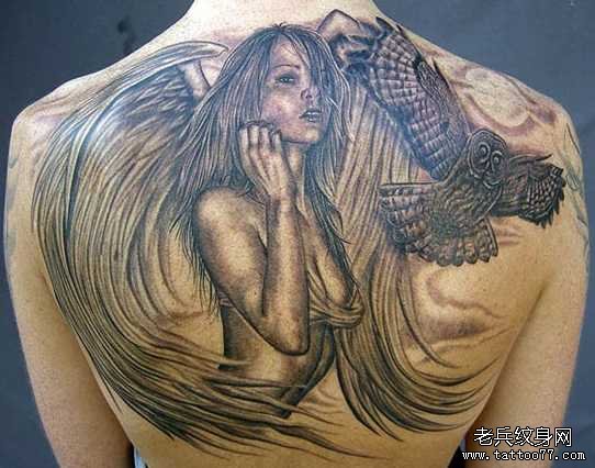 后背女天使纹身图案