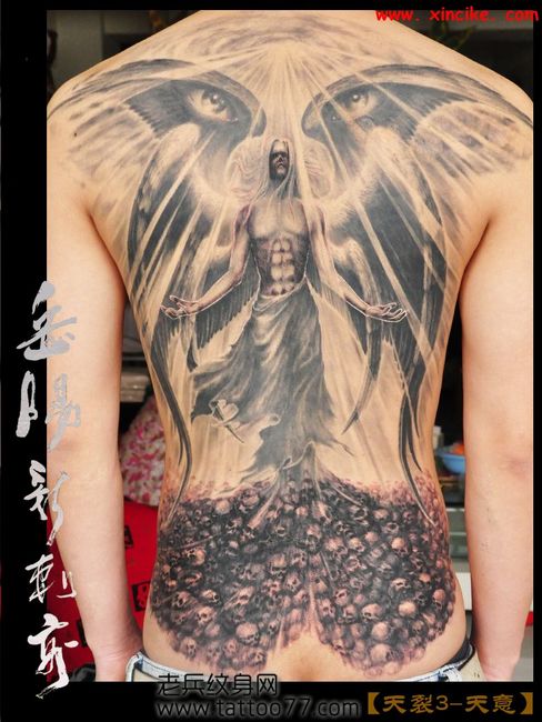 背部帅气酷气的满背天使翅膀纹身图案