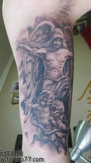 手臂帅气的守护天使纹身图案