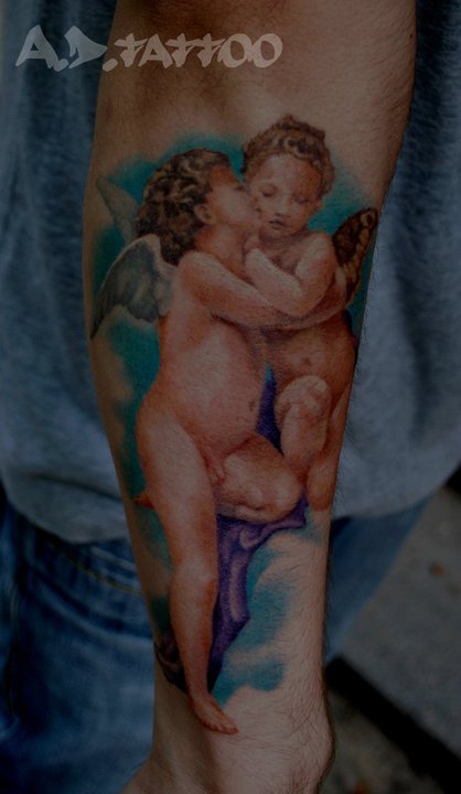 手臂可爱精美的小天使纹身图案