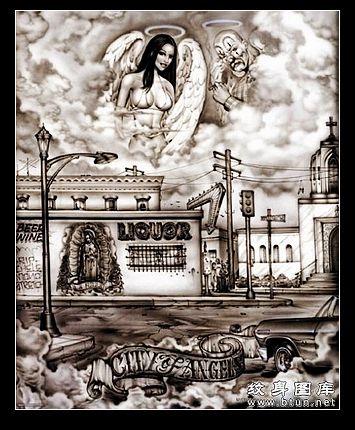 武汉纹身学校:欧美天使与魔鬼纹身手稿