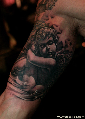 手臂纹身图案大全:手臂天使丘比特纹身图案图片