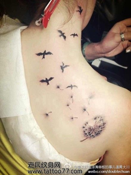 女生喜欢的蒲公英鸽子纹身图案