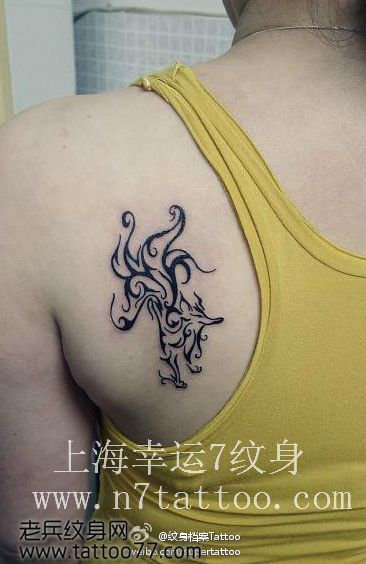 美女肩背时尚可爱的图腾狐狸纹身图案