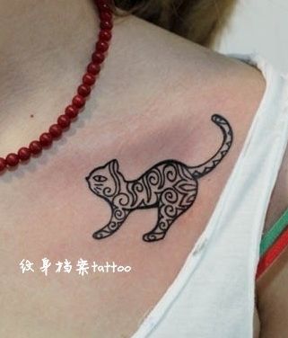 女生胸部一款简单好看的图腾猫咪纹身图案