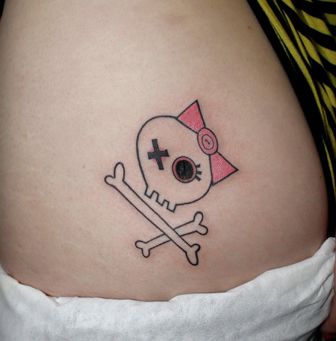 女孩子腿部一款可爱的图腾骷髅纹身图案