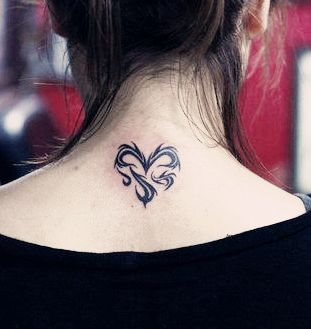 女生喜欢的颈部一款图腾爱心纹身图案