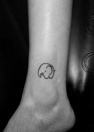 女孩子腿部可爱超萌的小象纹身图案