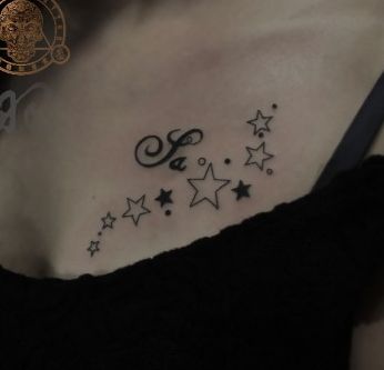 女孩子胸部精美的五角星纹身图案
