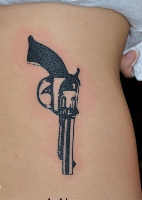 女生腰部图腾手枪纹身图案