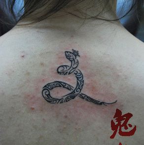 女生背部小巧的图腾蛇纹身图案