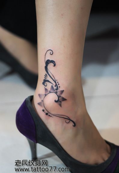 女孩子脚踝精美流行的图腾纹身图案