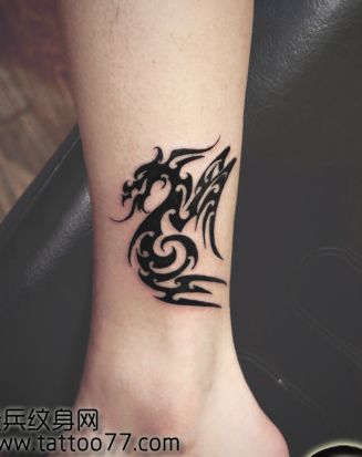 腿部帅气精美的图腾龙纹身图案