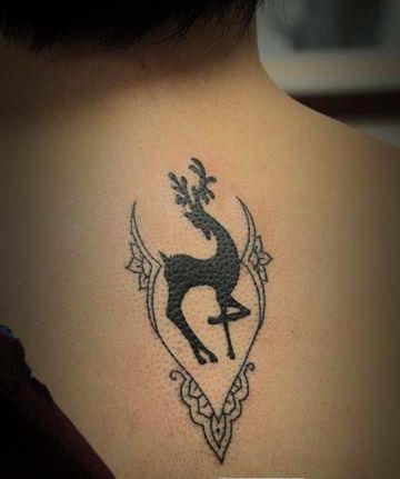 女生肩部时尚可爱的图腾猫咪纹身图案