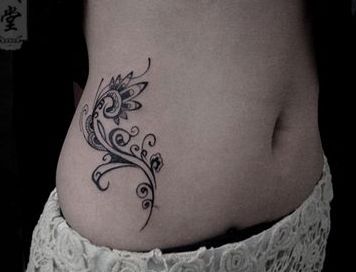 女孩子腹部时尚精致的图腾纹身图案