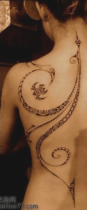 一款性感的背部图腾纹身图案