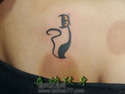 腰部好看可爱的图腾猫咪纹身图案