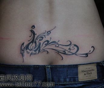 女孩子腰部精美的图腾凤凰纹身图案