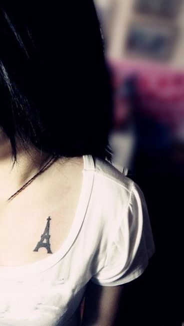 女孩子胸部图腾埃菲尔铁塔纹身图案