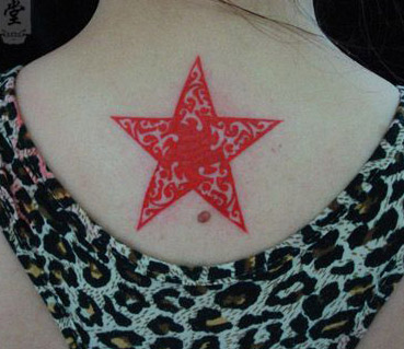 女生背部漂亮的彩色五角星纹身图案