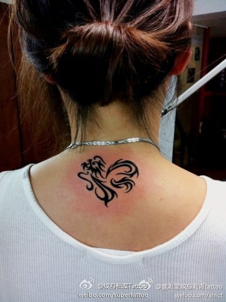 女生颈部图腾爱心龙纹身图案