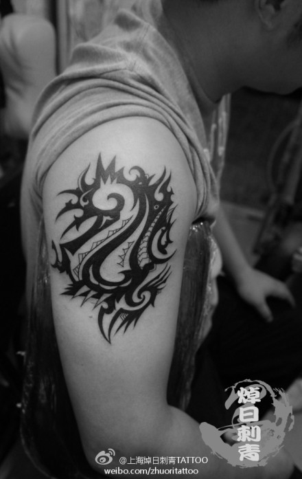 肩部龙图腾纹身图案