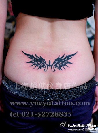 女生腰部精美流行的图腾蝴蝶翅膀纹身图案