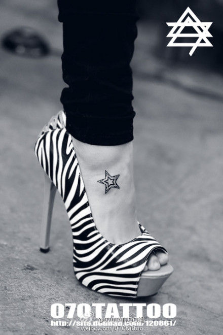 女生腿部小巧流行的图腾月亮与星星纹身图案