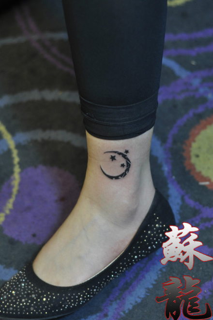 女生腿部小巧流行的图腾月亮与星星纹身图案