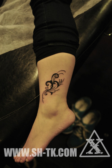 女生腿部唯美时尚的图腾藤蔓纹身图案