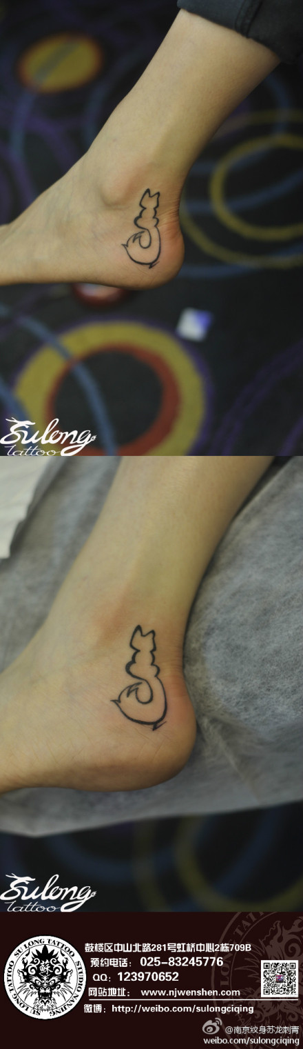 女生脚踝处小巧可爱的图腾狐狸纹身图案