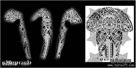霸气潮流的图腾花臂纹身手稿